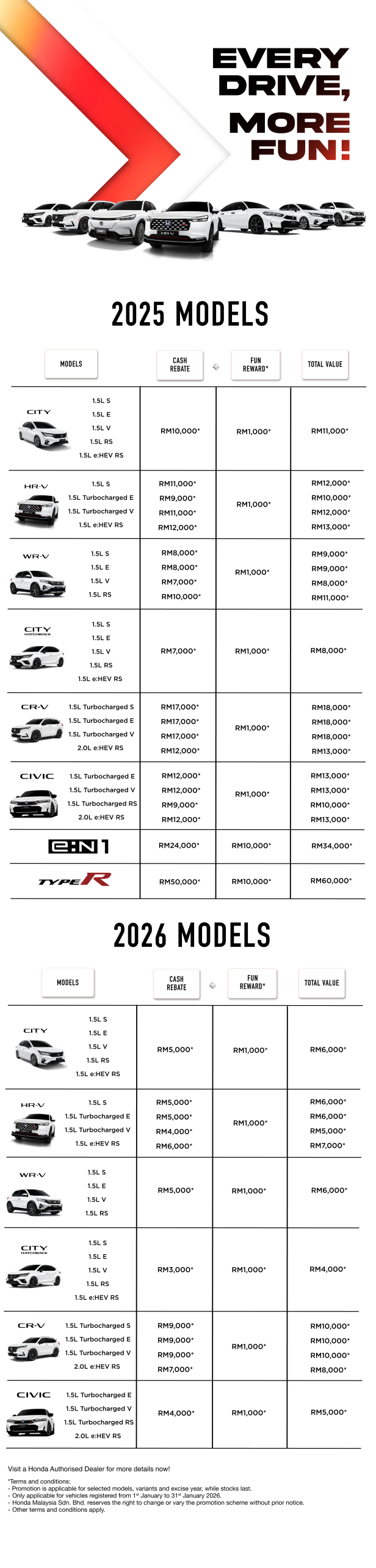 New year deals – Cash rebates up to RM18,000! Special government program, step up financing, additional rebates and more!